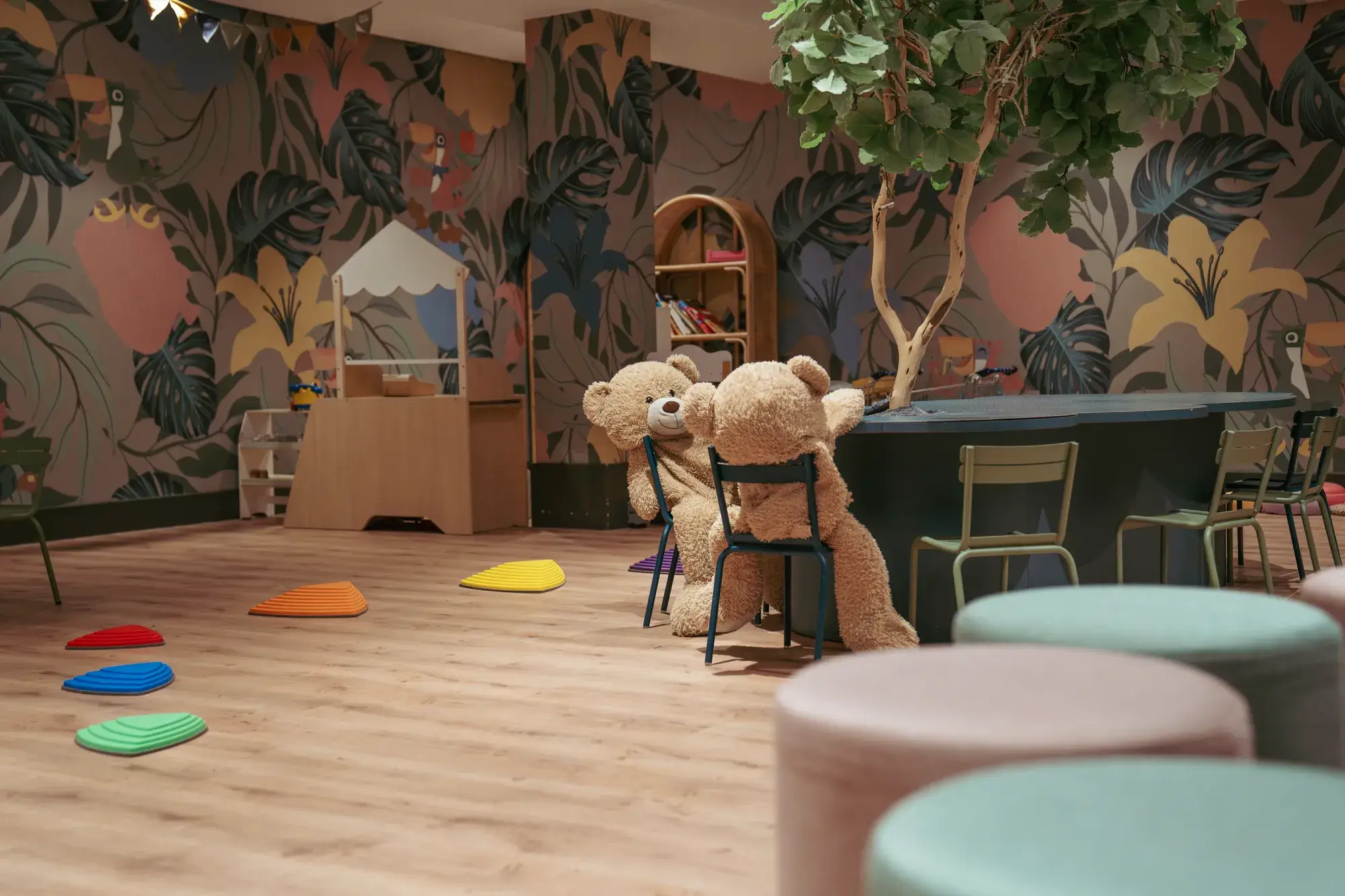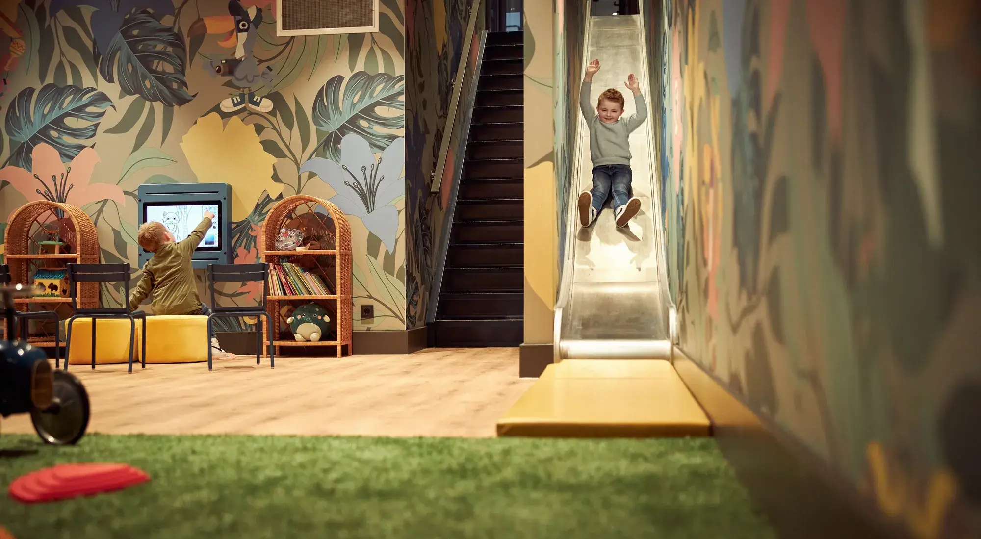 Met een glijbaan roetschen de kids zo de kinderhoek in, terwijl u nog even lekker kunt natafelen.
