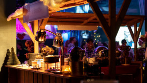 Die Herzl Hütte Venlo ist mit 5,5 Meter hohen Säulen mit Girlanden, Weihnachtsbeleuchtung, Fahnen und LED-Lichtern geschmückt. Der Innenraum besteht aus traditionellen österreichischen Bierbänken und Stehtischen. An verschiedenen Weihnachtsständen werden köstliche österreichische Gerichte angeboten. Hinter der Bar und den Kellnern laufen Mitarbeiter in Lederhosen. Werden Ihre Gäste auch in Lederhosen, Dirndl oder Skikleidung kommen? Gemütlich und stimmungsvoll.