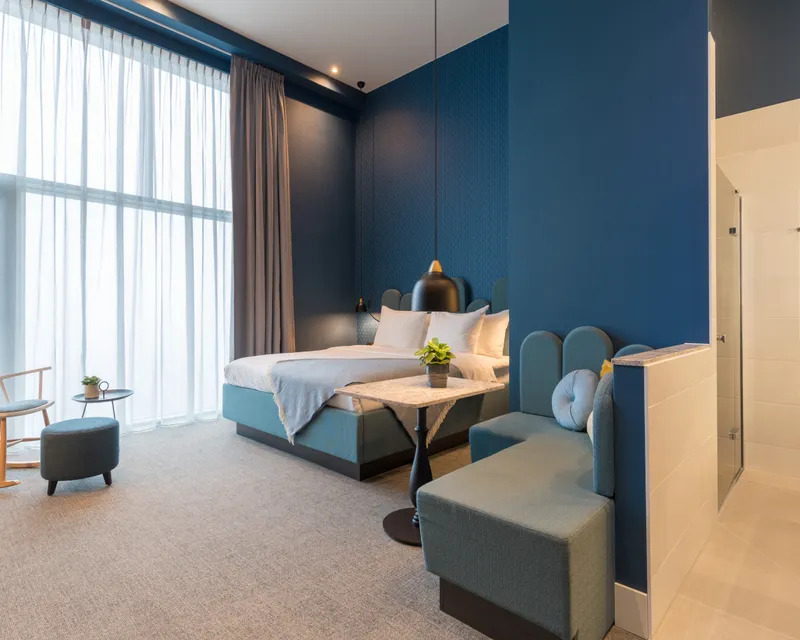 The room is 36 m2 and is equipped with a luxurious double bed 180 x 200 cm. The luxurious bathroom has a walk-in shower with rain shower, toilet, sink and hair dryer. All our rooms have a separate toilet.