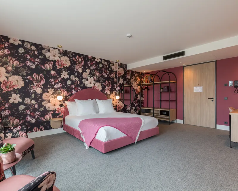 Enjoy pure luxury in this stylishly furnished Superior room with a luxurious double box-spring bed, 180 x 200 cm. Measured from the ground, the bed is 44 cm high including the mattress. Including the topper, the bed is 54 cm high.